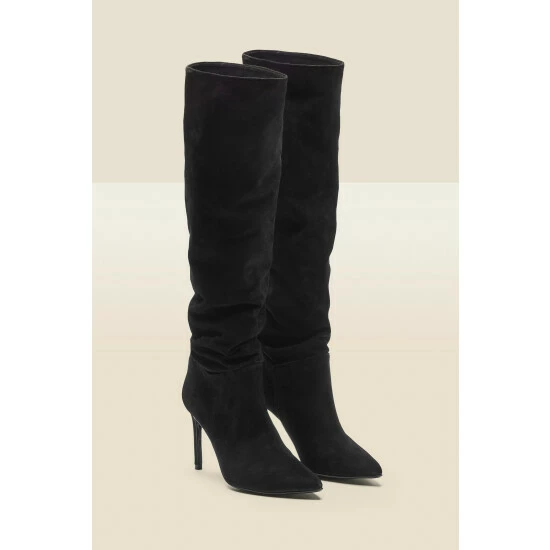 Because sometimes the boots make the outfit. Made from soft suede that’s made to sit slouch, it’s this season’s coolest boot shape. The classic pointed toe and stiletto heel add a touch of sexiness.