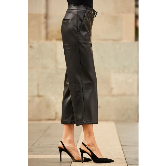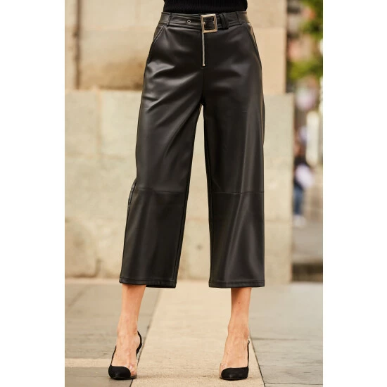 You won t believe they re not leather: flattering culotte style, waist-accentuating buckle belt detail, pockets because everything is better with pockets, and cropped leg to show off your shoes.