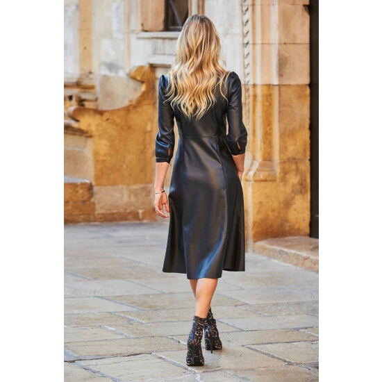 You d never know it s not leather. The classic shirt dress with a chic finish. On-trend gathered sleeves and flattering body-contouring panels.