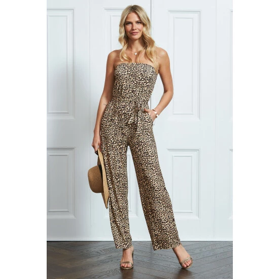 Sosandar Black Leopard Print Bandeau Jumpsuit With Pockets