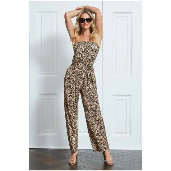 Sosandar Black Leopard Print Bandeau Jumpsuit With Pockets