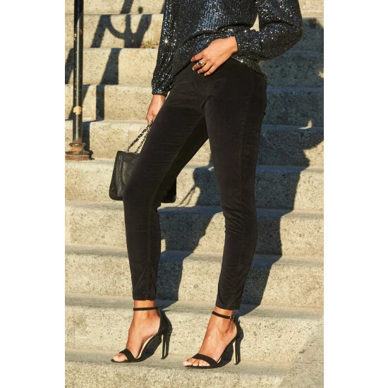 Your go-to jeans just got an upgrade. In a classic skinny style with a luxe velvet finish, they are sexy, feminine and chic.Short Leg Length is 29”, Regular Leg Length is 31”, Long Leg Length is 33”.