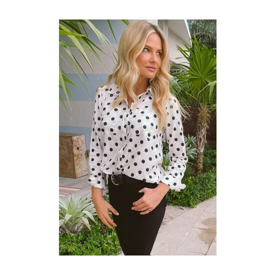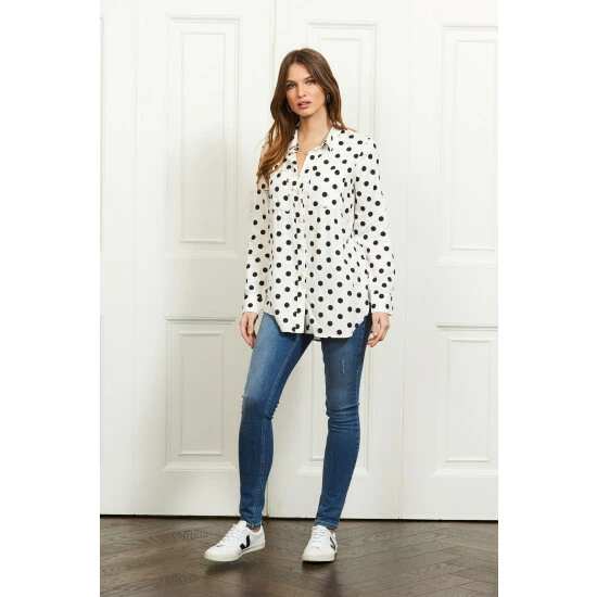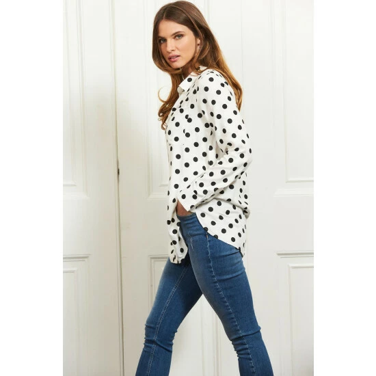 Sosandar Black Spot Print Twill Casual Longline Shirt