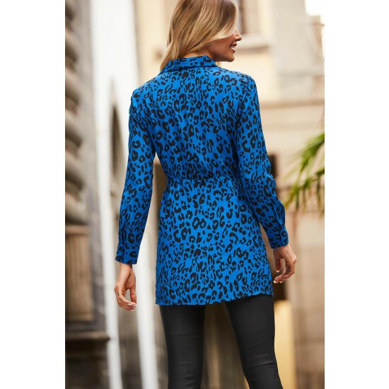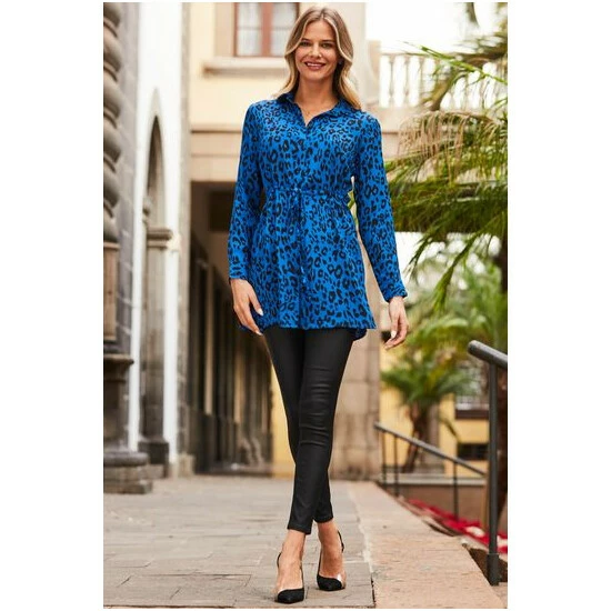 Sosandar Blue Animal Print Tie Waist Longline Shirt