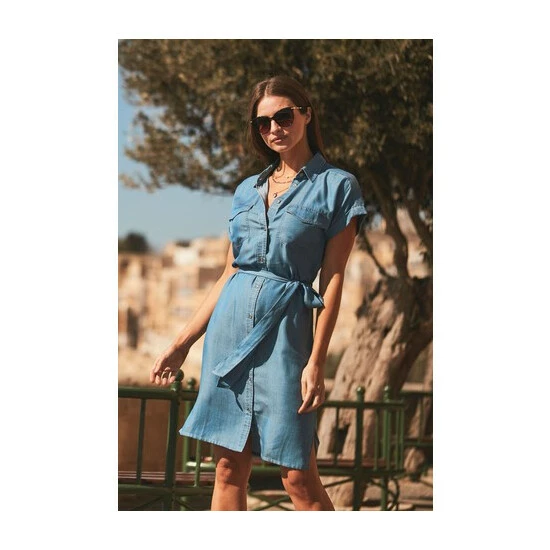 Sosandar Blue Belted Dress