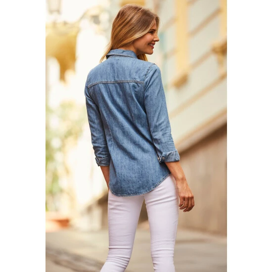Sosandar Blue Relaxed Fit Popper Front Denim Shirt
