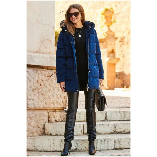 The chic way to stay warm, ultra-luxe velvet fabric, padded design for maximum cosiness, faux fur hood to keep you warm and dry, pockets because everything is better with pockets, style with skinnies boots and a jumper for the ultimate winter outfit. Model is 5 9 and wears a UK size 8.