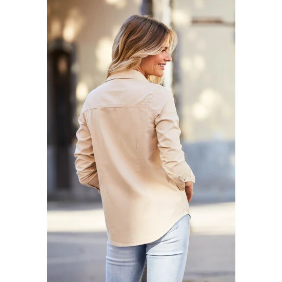 Sosandar Brown Denim Relaxed Fit Popper Front Shirt