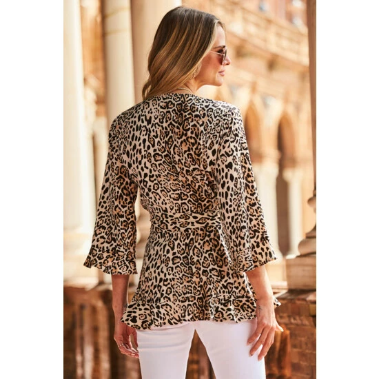 It s got serious new favourite top potential: wrap front, longline hem, and waist tie – ridiculously flattering, V-neck looks great on all boobs, and fluted ruffle sleeves and hem for a statement silhouette.