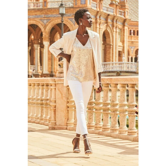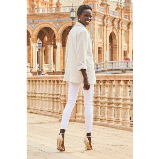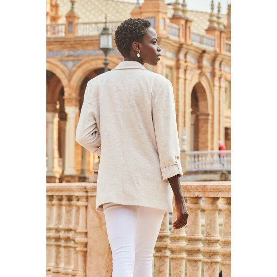 Sosandar Cream Marl Tab Sleeve Ponte Blazer