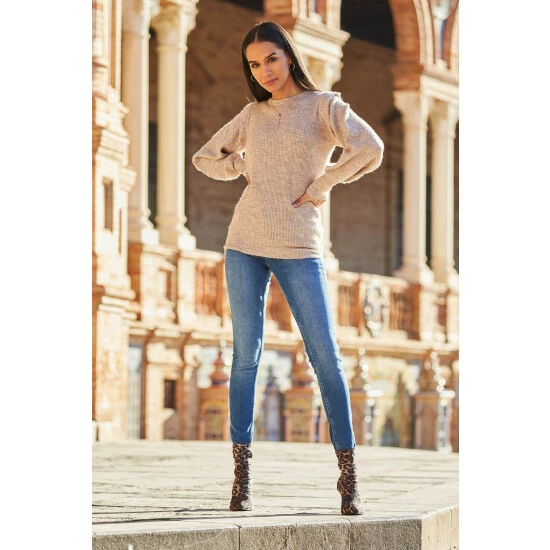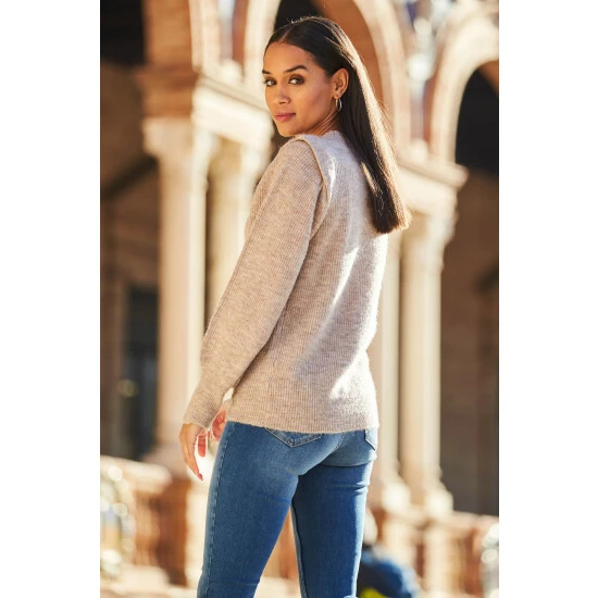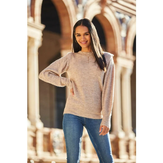 Sosandar Cream Super Soft Pleat Shoulder Jumper