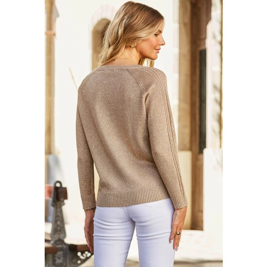 Knitwear but make it sexy: gorgeous metallic knit with a subtle shimmer, flattering V-neck, slouchy fit for style and comfort, and ribbed cuffs and hem – it s the little details.