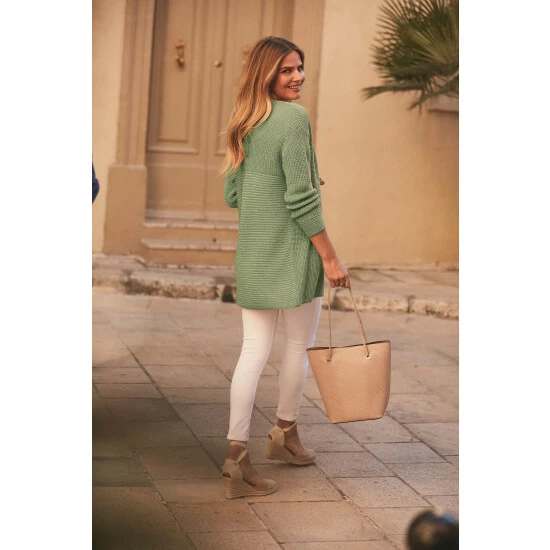 Sosandar Green Longline Knitted Cardigan
