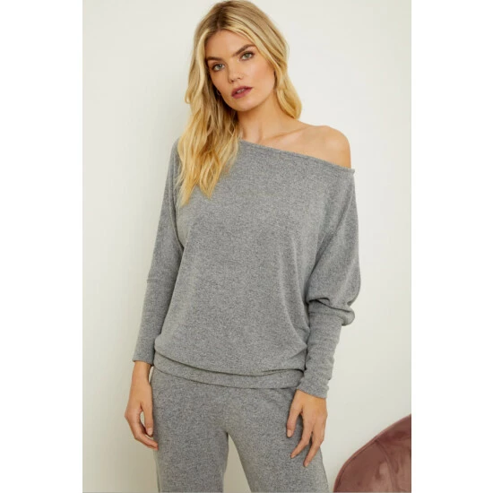 Sosandar Grey Super Soft Batwing Sleeve Loungewear Top Co-Ord