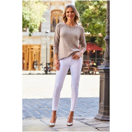 You can never have enough knitwear, cosy has never looked so chic, ribbed cuffs and hem, that colour goes with everything, we love it with white denim, add gold heels for relaxed glamour. Model is 5’9” and wears a UK size S.
