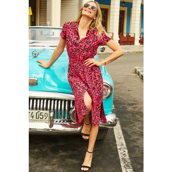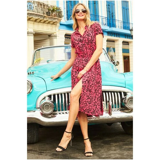 Sosandar Pink Animal Print Tie Waist Shirt Dress