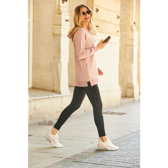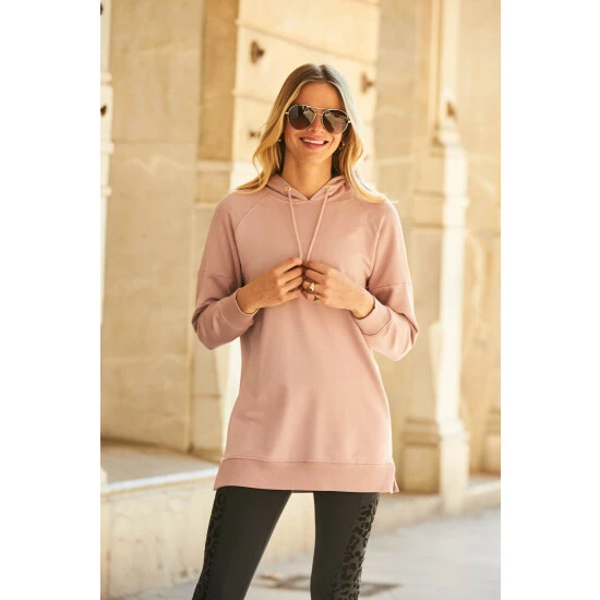 Sosandar Pink Longline Hooded Sweatshirt With Gold Zip Detail