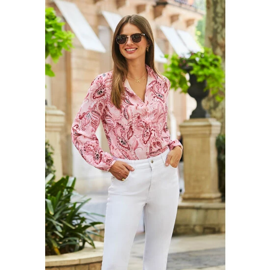 Found: your new favourite print, stunning blouson sleeves, classic shirt shape, you’ll wear it for work and play, it looks dreamy with white denim, complete the look with barely there heels. Model is 5.7 and wears a UK size 8.