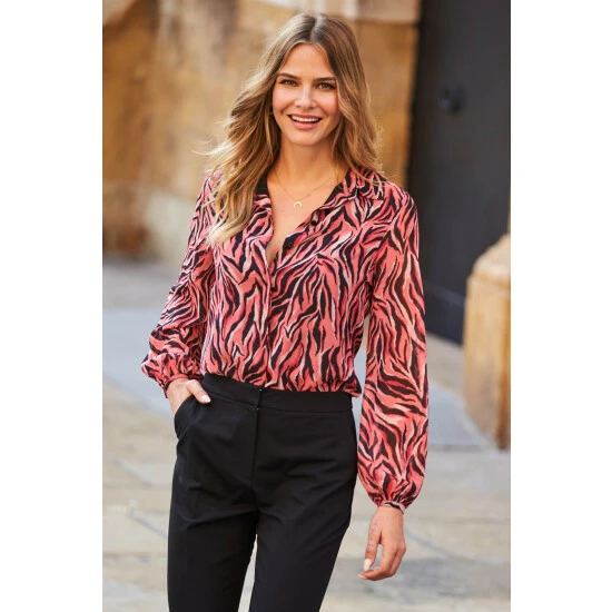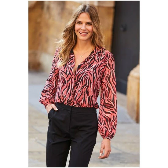 And you thought you had enough animal print, classic shirt style – wear it day or night, gorgeous blouson sleeves, comfy but chic too, wear it tucked in or out, perfect with denim or leather. Model is 5.9 and wears a UK size 8.