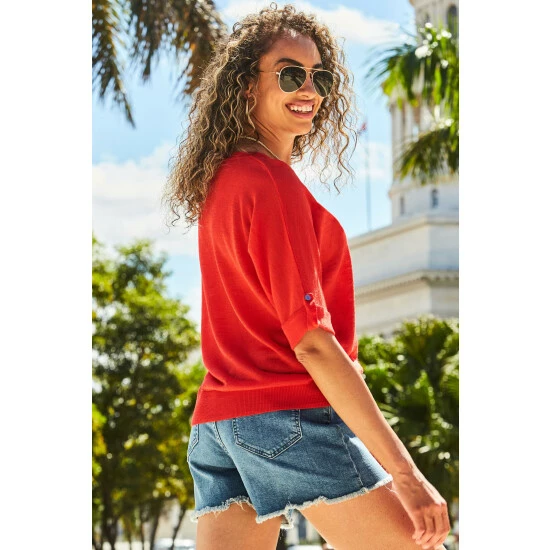 Sosandar Red Folded Sleeve Tab Sleeve Linen T-Shirt