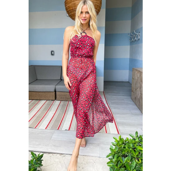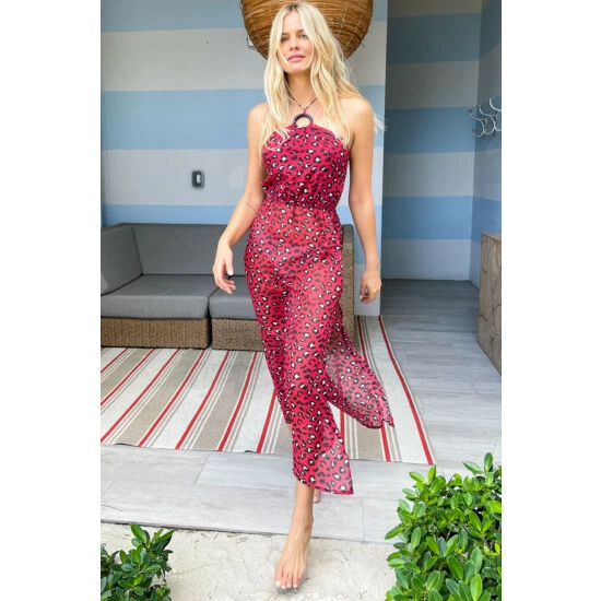 Sosandar Red Leopard Print Halter Neck Sunshine Dress