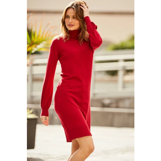 Sosandar Red Roll Neck Slouch Jumper Dress