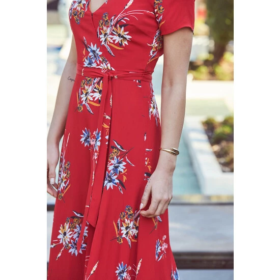 Sosandar Red Split Front Maxi Dress