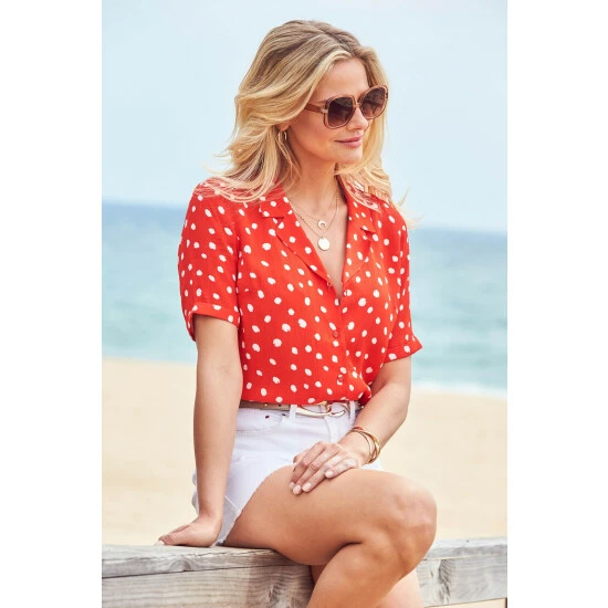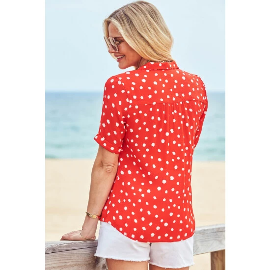 Sosandar Red Spot Print Short Sleeve Relaxed Fit Shirt