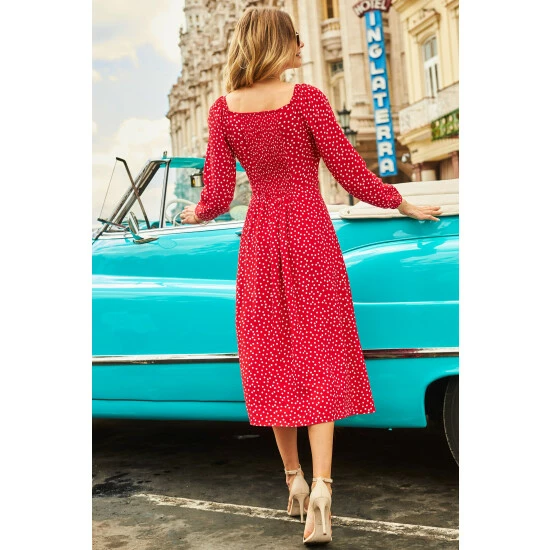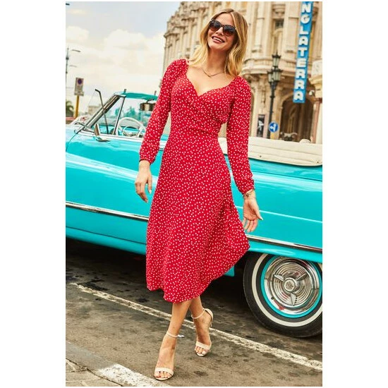 Sosandar Red Spot Print Wrap Front Midi Dress
