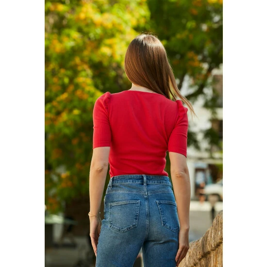 What you call a really nice top, that neckline is seriously flattering, statement puff sleeves, luxe gold zip detail, red is a guaranteed confidence booster.