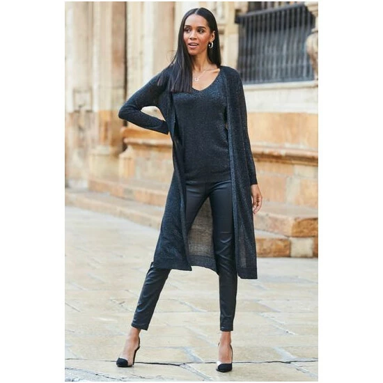 Sosandar Silver Metallic Super Sparkly Longline Cardigan