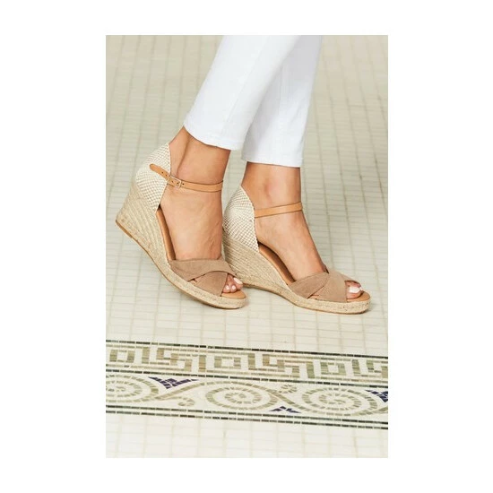 So comfy, you won’t take them off. The classic espadrille sole with statement ribbon ties and an open toe cross strap style. The chic and versatile taupe shade will go with your fave summer dress.