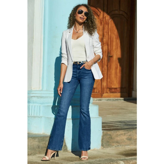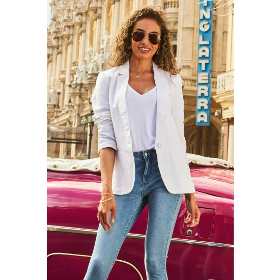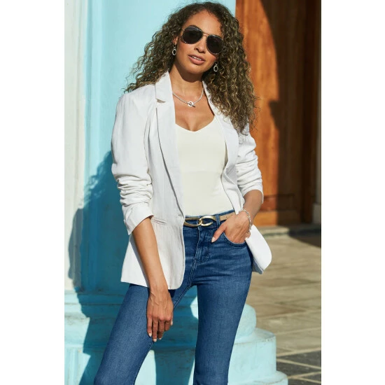 Sosandar White Linen Mix Longline Blazer